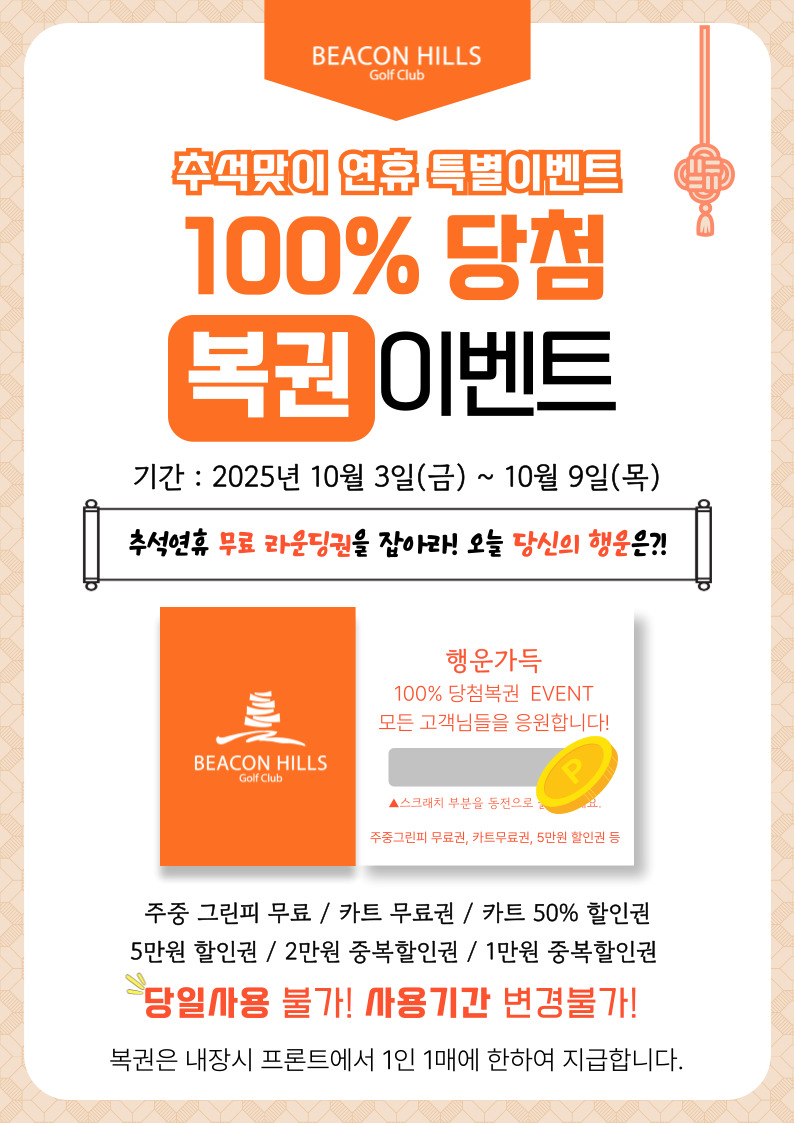 [진행] 추석맞이 연휴 특별이벤트 100%당첨 복권이벤트